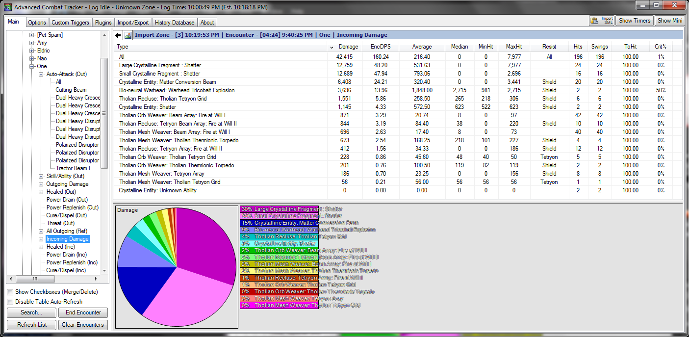 Some of the information the stats provide is interesting, and can help you determine the best parts of your build, and maybe the worst parts that need culled. I have some screenshots from a log recorded during a Crystalline Cataclysm event.